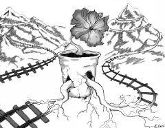 (Steel Roots illustration by Rachel Ward) Book One: The Boxcar Baby coming 2013 Book Two: coming 2014 Book Three: coming 2015 Synopsis of The Boxcar Baby: The Box Car Baby introduces the character of AB'Gale Steel who was born in a boxcar on a train bound for Georgia, according to what her papa told her. Bishop Steel, a mechanical engineer for the Southern Railroad, found his adopted daughter snuggled in a basket of cotton on an otherwise empty boxcar in the train yard. When no one came around to claim the baby, Bishop Steel, rather than relinquish the child to the State only to end up at the Workhouse someday, smuggled her home to raise as his own. The name on the boxcar he found her in read, A B Gale Logs, and so he named the baby AB'Gale. But if the mystery of who her real parents are isn’t enough for fifteen-year -old AB'Gale, Papa Bishop goes missing. Worried for her family and afraid of having to spend her life at the Workhouse, AB'Gale goes into town to see if anyone’s seen her papa, only to find a deeper mystery. At the train station no one seems to know who her papa is even though he’s worked for the Southern Railroad for thirty years. An encounter with a strange Hobo-man, who claims to know her father, results in the acquisition of a leather eye-glass tube that he says belongs to her papa. Before AB'Gale can question him further the man runs away. When she gets home, she finds the Crushers taking her grandma off to the Oldies-home, so she hides until they are gone.
